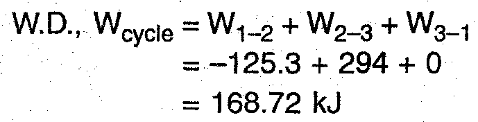 (a) heat transfer (b) work transfer (c) internal energy for each process and for the cycle. Represent the process as PV and T-S diagrams.